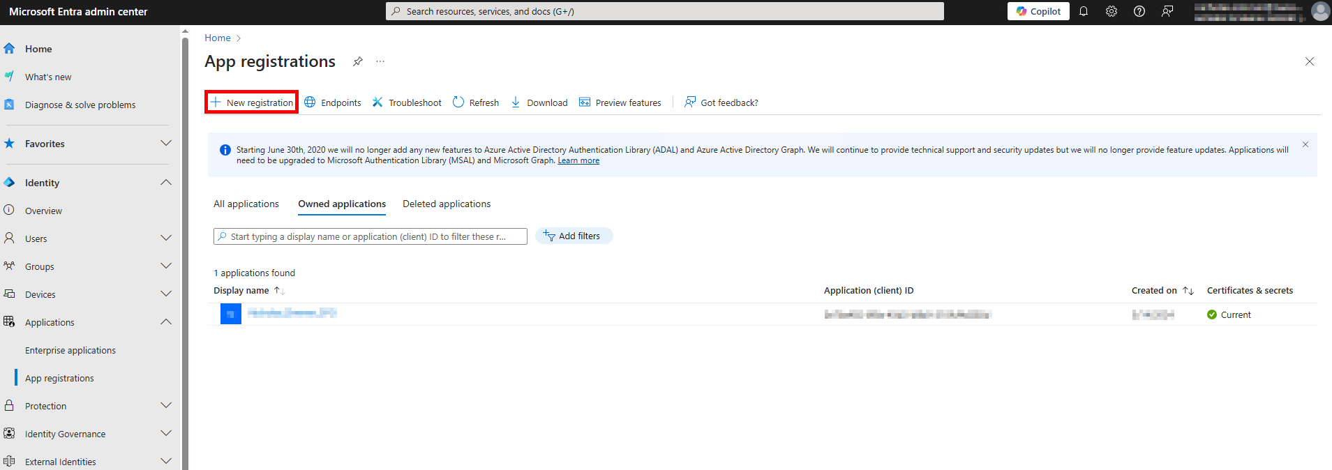 Navigate to Identity > Applications > App registrations.